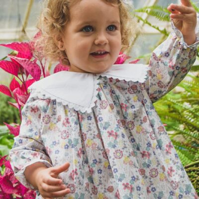 Blusa plumeti blanca con motitas en color blanco. Manga corta y detalle de lazos en la espalda.