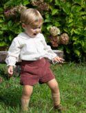 Bermuda de pana con bolsillos en color vino que combina genial con nuestra blusita de búhos con cuello bebé.