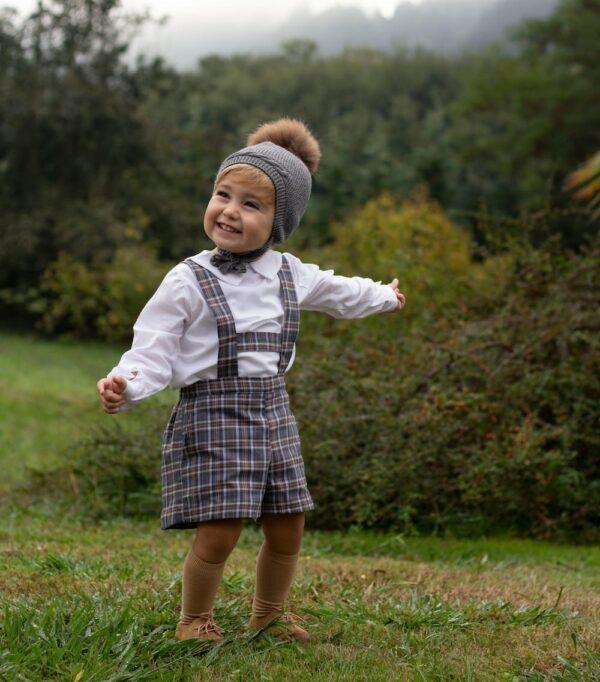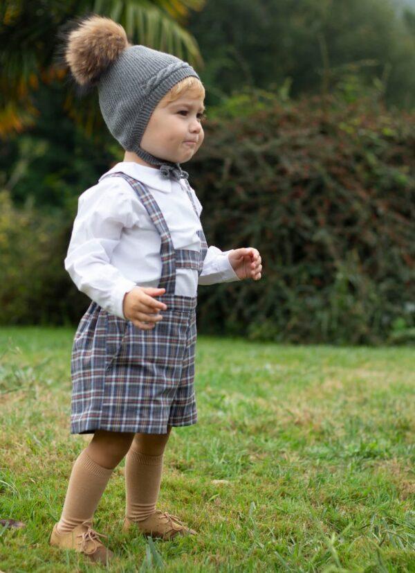 Bermuda de cuadros tartán con tirantes ajustables. Forro 100% algodón