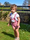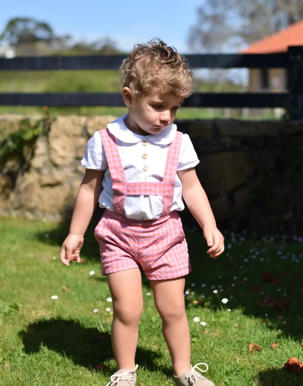 Bermuda con tirantes vichy fluor, forrada en su interior.