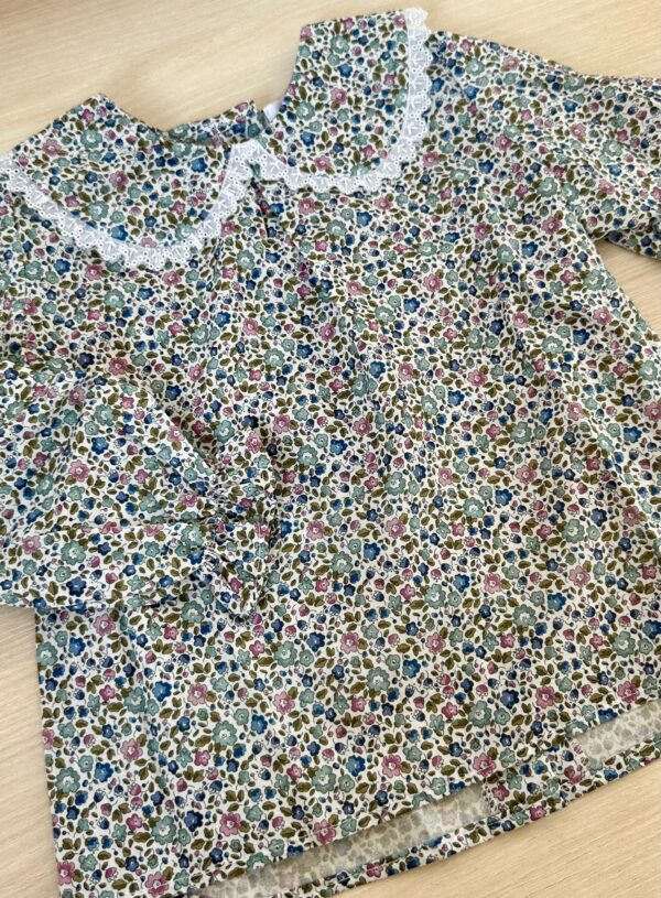 Blusa de flores 100% algodón con detalle de puntilla alrededor del cuello.