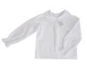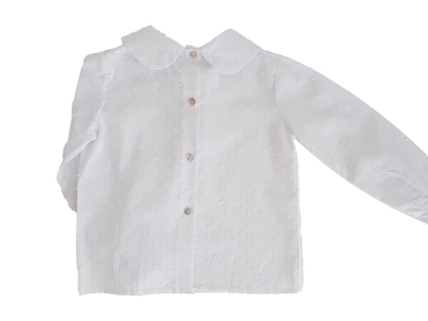 Blusita plumeti blanca con cuello redondo y manga larga.