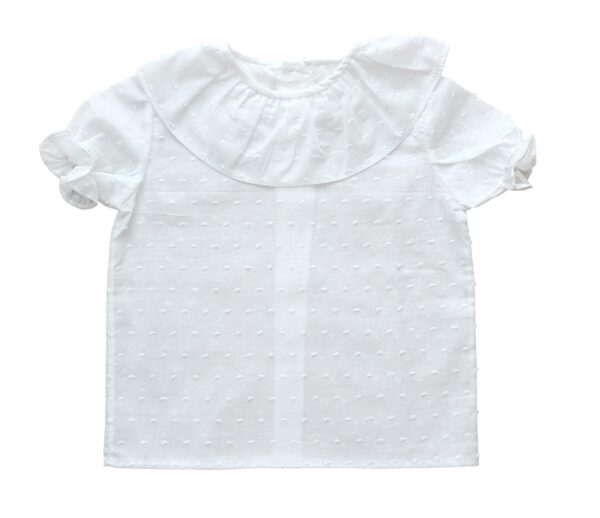 Blusita «Mimosas» unisex plumeti de algodón 100% en tono crudo.