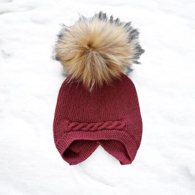 Combínala con nuestro culotte denim de volantes y gorrito de pompón granate granate