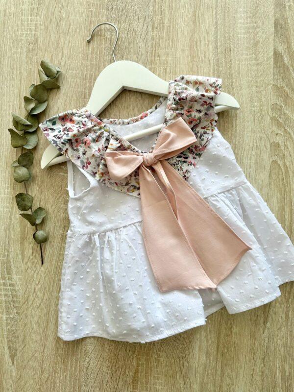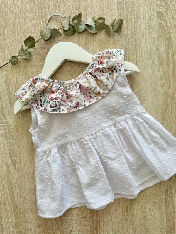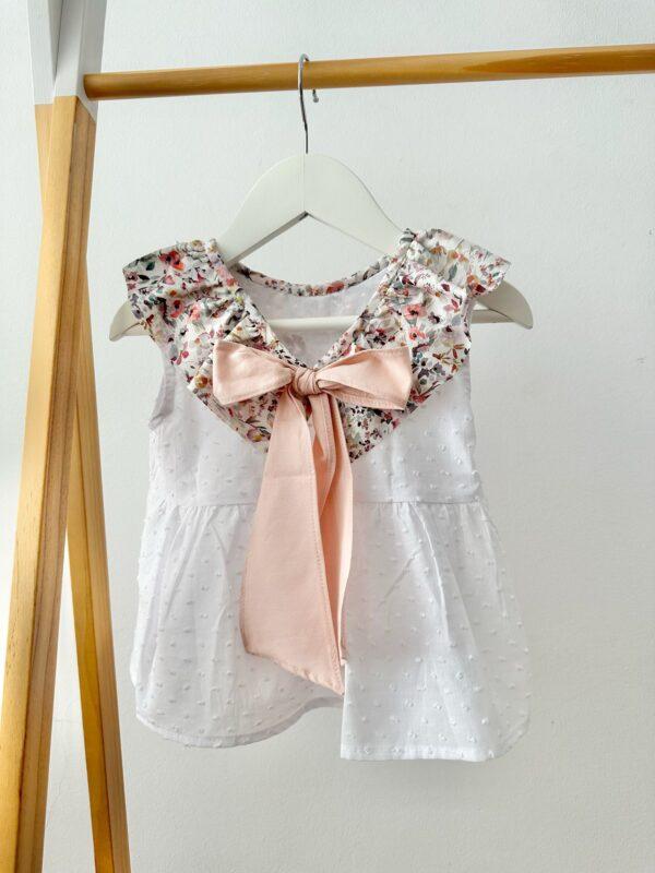 Blusa plumeti blanca con cuello y tirantes de volantes en tejido Liberty London Felda