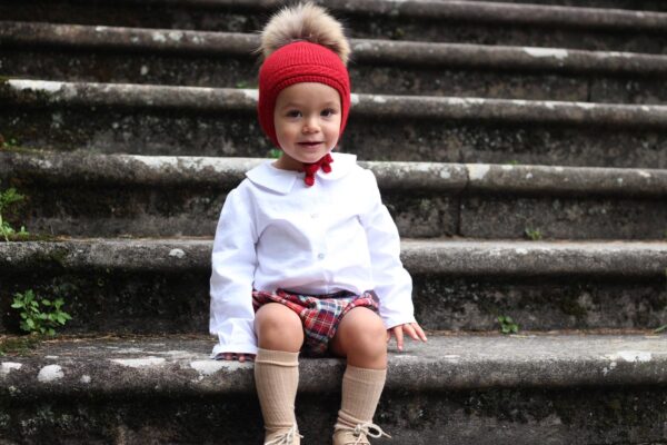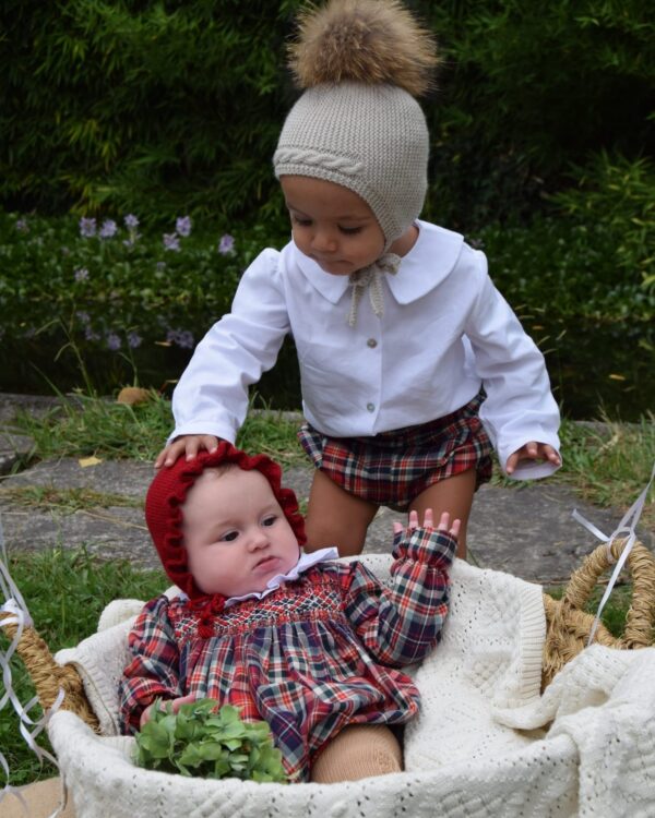 Camisa algodón blanca de manga larga. Cuello en pico y botones delanteros.