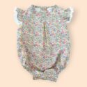 -Ranita de flores 100% algodón manga corta con puntilla en los volantes y botones de corazón en nácar natural.