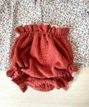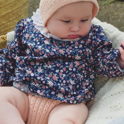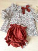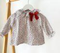 -Blusa en tejido de bambula 100% algodón con cuello volante, manga larga y lacito en el cuello.