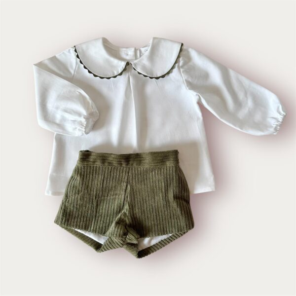 -Bermuda de pana verde forrada en su interior con goma trasera.
