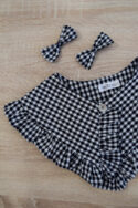 Cuello vichy negro rematado con volante que queda ideal sobre cualquier prenda (blusas, jersey..Etc).