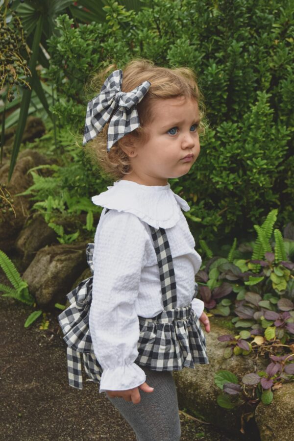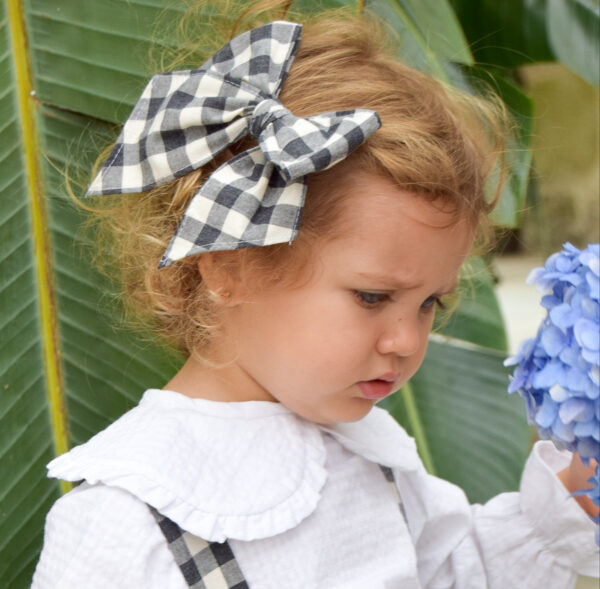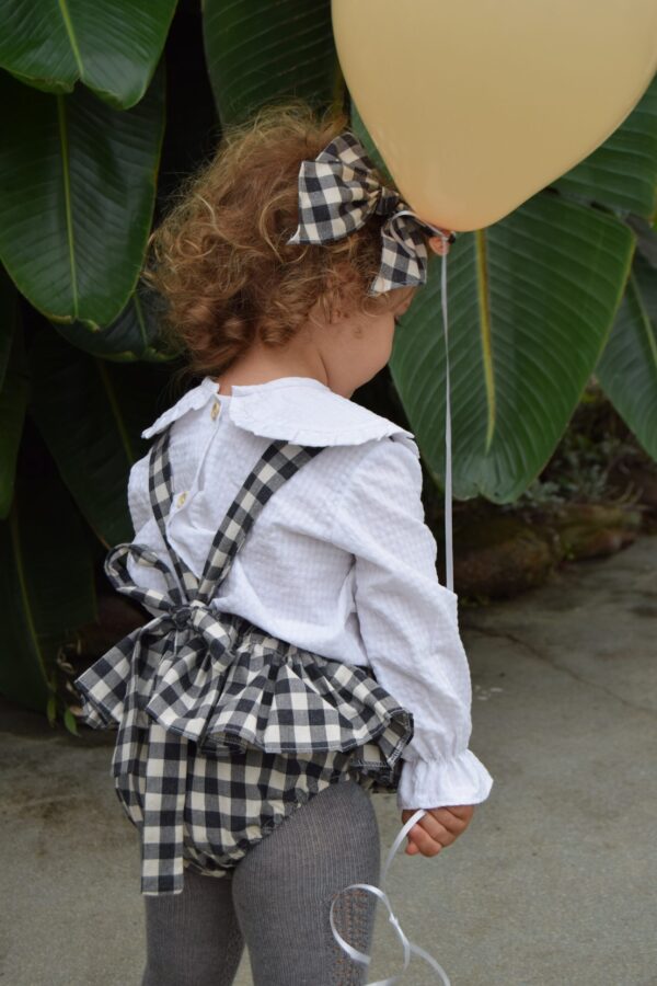 -Braguita de volante con tirantes y lazada trasera ajustable. 100% algodón