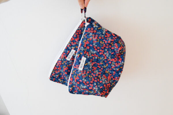 Bolsita neceser para llevar tus imprescindibles. Forrada en su interior de tejido 100% algodón.