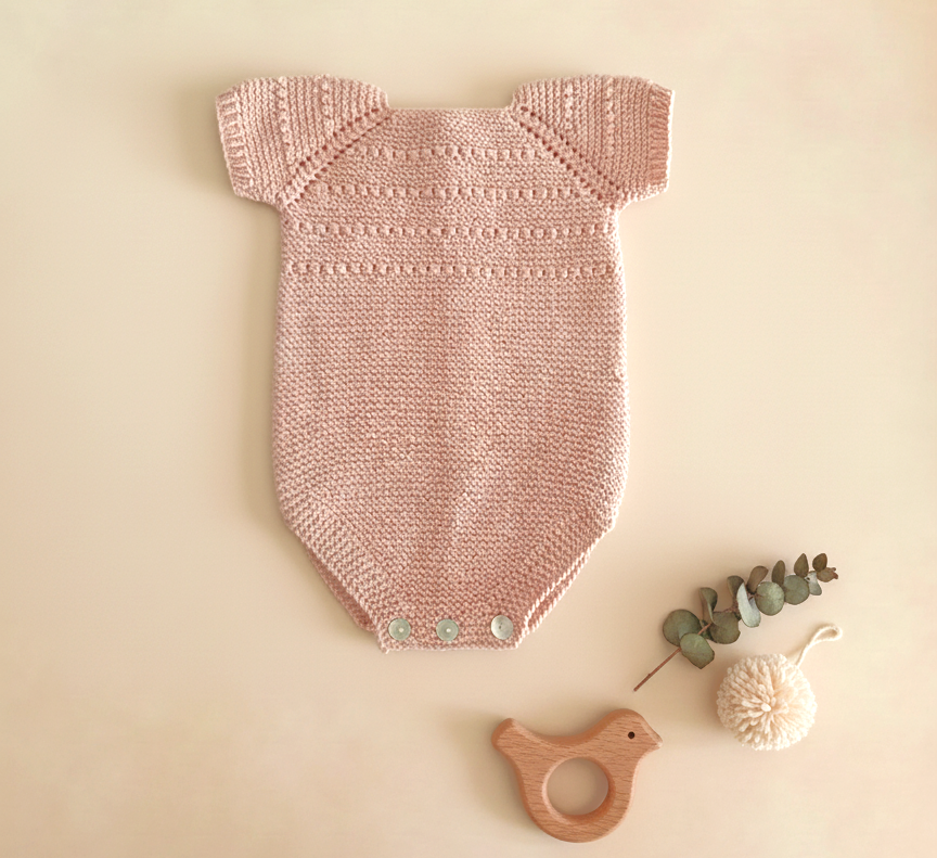 Pelele de punto tejido a mano. Disponible en algodón o en lana y en varios colores.