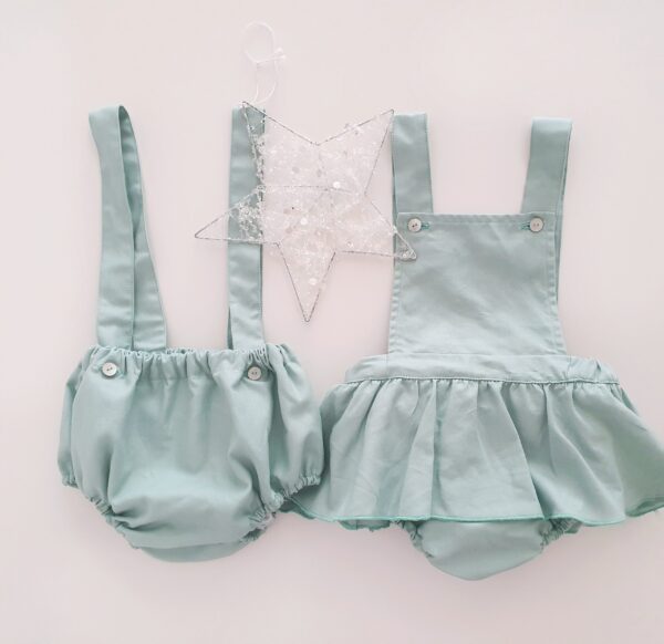 Culotte con tirantes en color verde agua. Tejido villela 100% algodón orgánico. Forro de algodón.