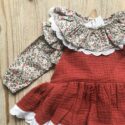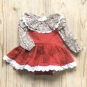 Ranita en bambula color teja 100% algodón. Tirantes ajustables y puntilla blanca en el volante