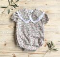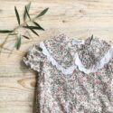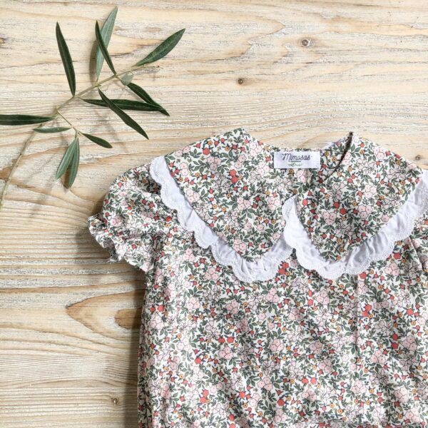 Ranita estampado flores manga corta con cuello en pico y puntilla bordada.