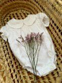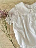 Ranita plumeti blanca con motitas en amarillo y cuello bebé.