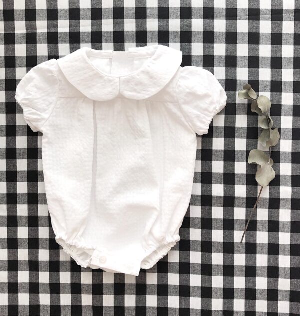 Ranita Unisex «Mimosas» en vichy blanco y manga corta.