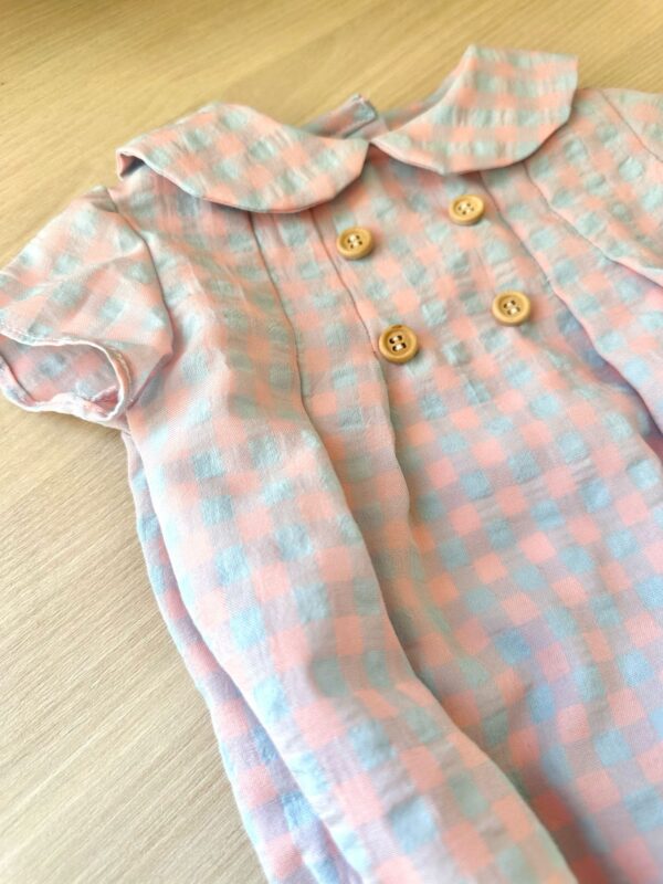 Ranita vichy en tonos pastel azul y rosa. Forro 100% algodón.