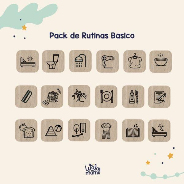 - 18 fichas a doble cara con las siguientes tareas: cepillarse los dientes, secarse el pelo, lavarse las manos, ir al baño, ducharse, peinarse, dormir, despertarse, desayunar, comer/cenar, ir al parque, merendar, jugar, ponerse el pijama, vestirse, ir al cole, leer un cuento. Por la parte trasera incluye cada ficha una estrellita.