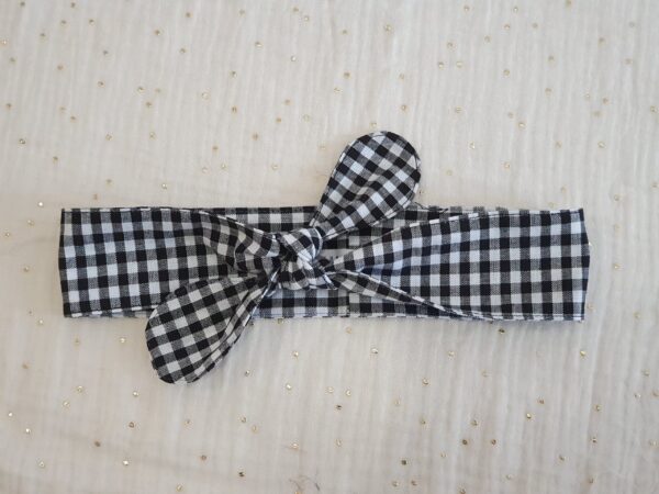 Diadema turbante estampado Vichy negro. Ajustable a la cabeza del bebé/niña.