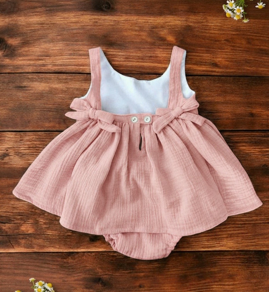 Vestido bambula 100% algodón color rosa con lacitos en la espalda.