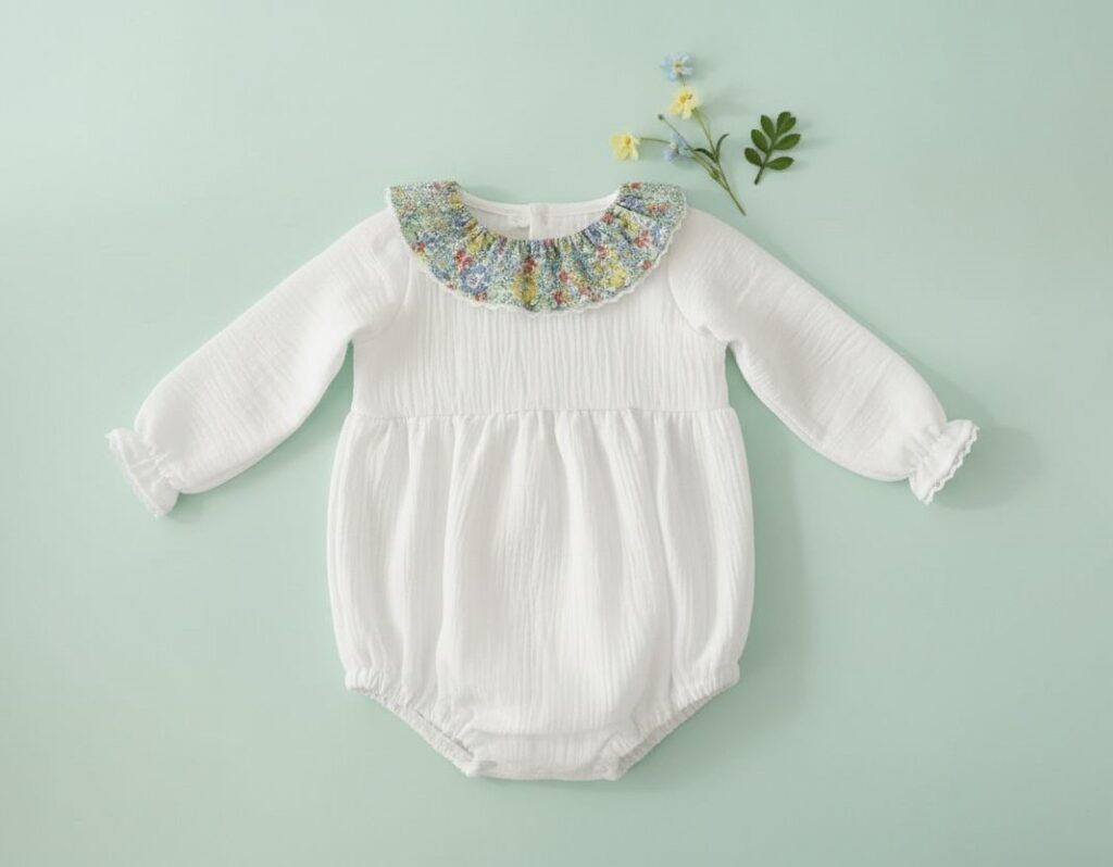 -Blusa de flores acuarela 100% algodón con detalle de puntilla en el cuello.