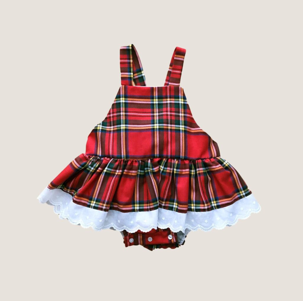 Ranita tartán roja con volante y puntilla bordada. Combina muy bien con cualquier blusita blanca y leotardos.