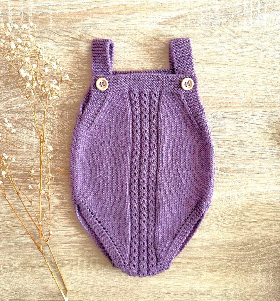 Ranita tejida a mano en lana merino o algodón con tirantes y botones de madera.