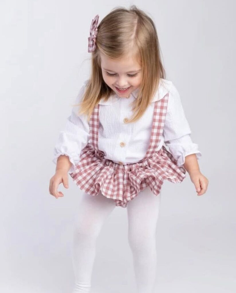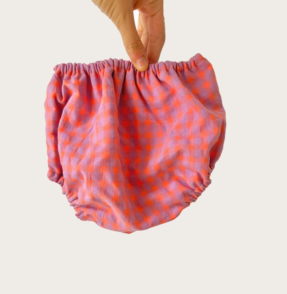 -Braguita vichy rosa 100% algodón forrada en su interior con tirantes ajustables con lazada.