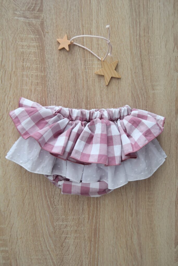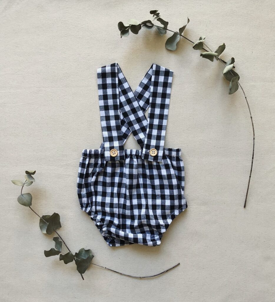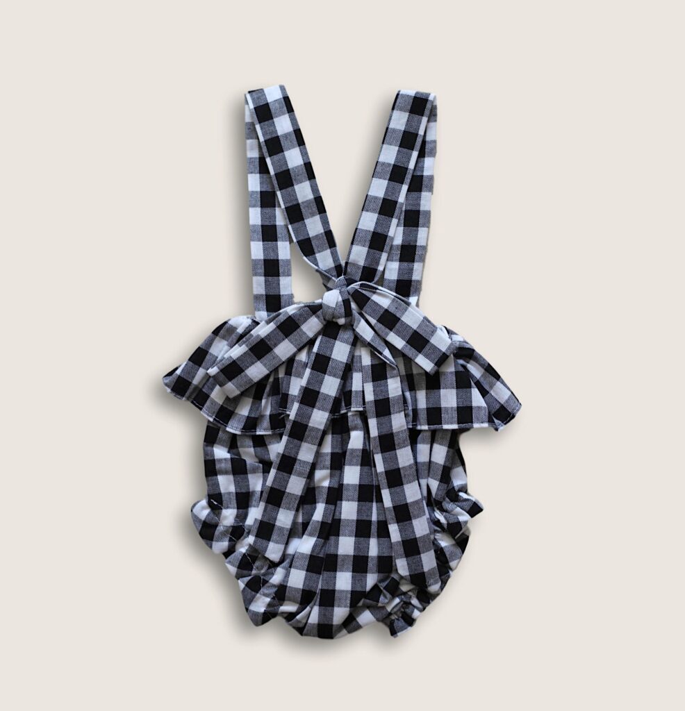 Ranita "Mimosas" vichy negro de algodón 100% y forro de algodón orgánico 100% certificado OEKO-TEX