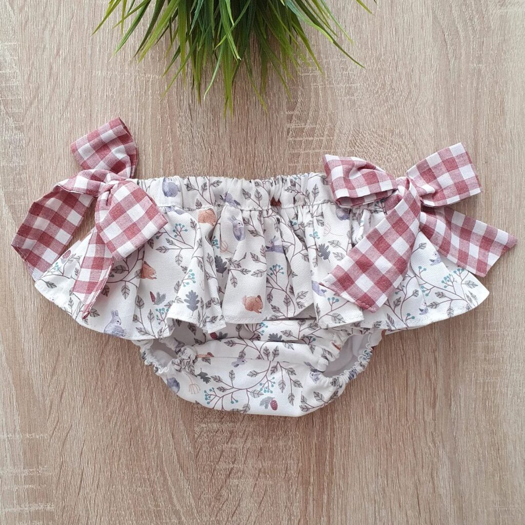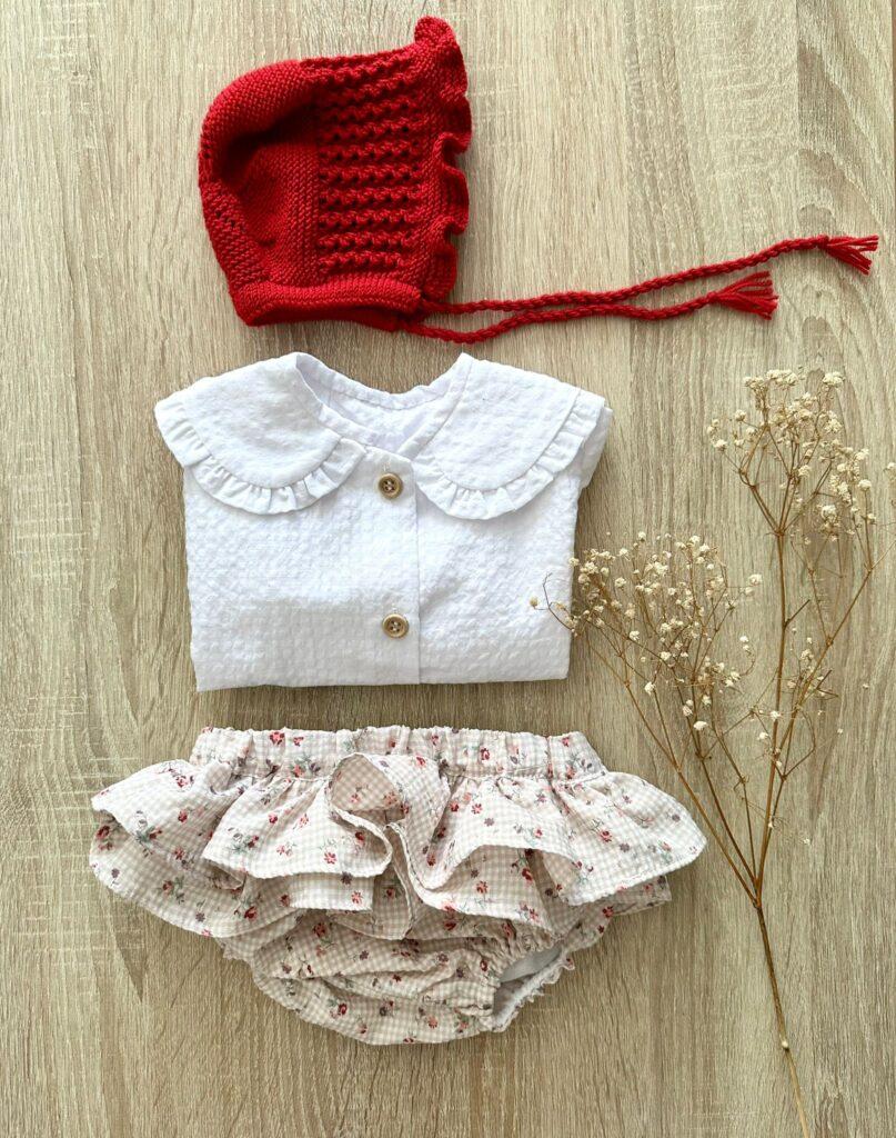 -Braguita de dos volantes tejido vichy de florecitas, forrada en su interior.
